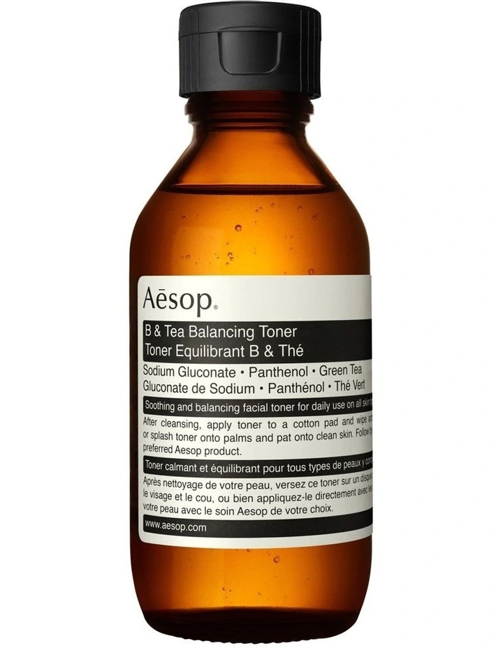 This alcohol-free B & Tea Balancing Toner by Aesop is gentle enough for everyday use and suitable for all skin types, including sensitive complexions. Contains provitamin B5 and antioxidant rich green tea extract to fortify skin texture, balance uneven skin tone, refine pores and prepare skin for hydration. An essential, all climate toner to refresh, refine and protect the skin in the cleaning process.