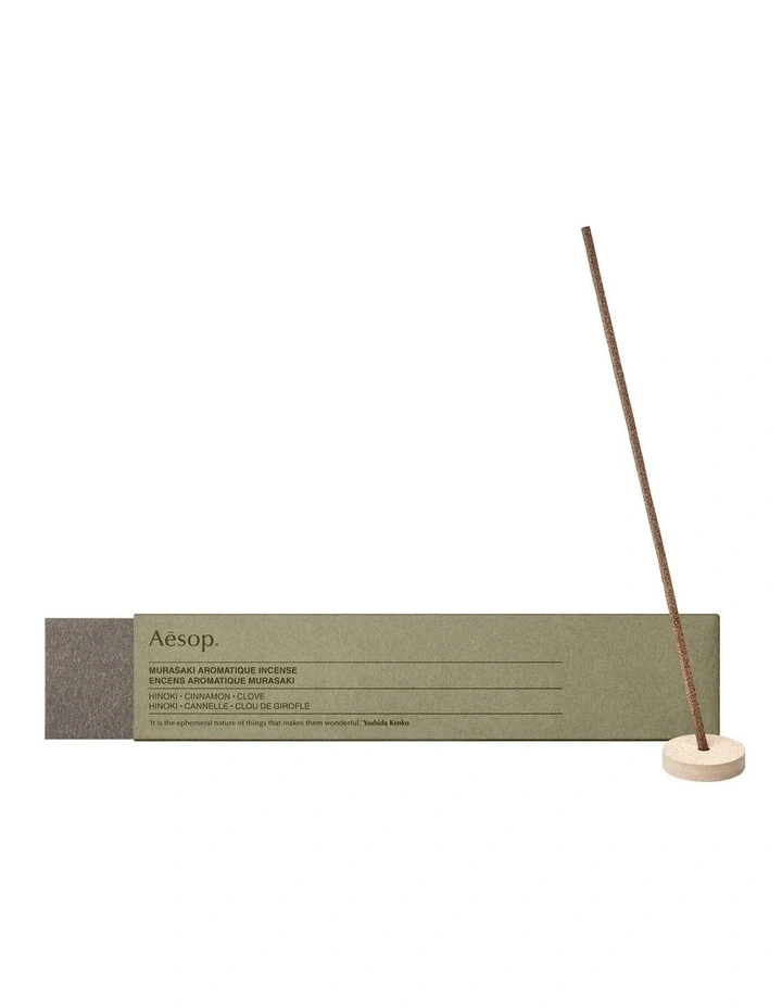 Murasaki Aromatique Incense features a unique square profile, and manufactured using traditional blending techniques paired with modern processing. Each stick comprises 100 percent incense with no bamboo core, this format allows for an aromatic effect that gently fills the space and lingers are the incense has burned down.