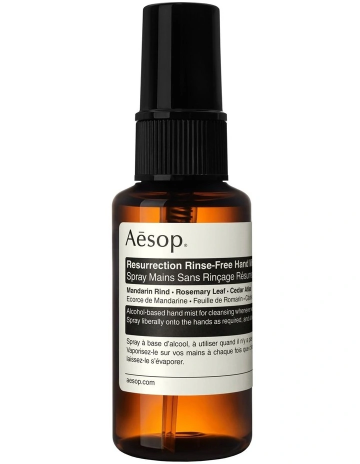 Product Ingredients: Alcohol Denat., Water (Aqua), Glycerin, Saccharide Isomerate, Citrus Nobilis (Mandarin Orange) Peel Oil, Aloe Barbadensis Leaf Juice, Cedrus Atlantica (Cedarwood) Bark Oil, Lavandula Angustifolia (Lavender) Oil, Citrus Aurantium Dulcis (Orange) Oil, Rosmarinus Officinalis (Rosemary) Leaf Oil, Citric Acid, Sodium Citrate, Limonene, Linalool.This product contains Alcohol Denat. 76% (v/v)This ingredient list is subject to change. Prior to use, please refer to the product label for the most accurate information.All Aesop products are vegan. We only use ingredients with a proven record of safety, efficacy and sustainability.